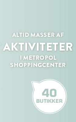 I Metropol Shoppingcenter lige i hjertet af Hjørring finder du alt, hvad du skal bruge af både butikker og sjove aktiviteter for hele familien. Med 3 timers gratis parkering har du masser af tid til at nå det hele – og kan også nå at runde shopping-turen af med et cafebesøg eller en god middag på et af centerets spisesteder. Uanset om du har brug for noget helt specifikt i en specialbutik, eller bare gerne vil have en hyggelig shoppingtur med hele familien eller et par gode venner, skaber Metropol Shoppingcenter de perfekte rammer. Så velkommen til hele Vendsyssels indkøbscenter.