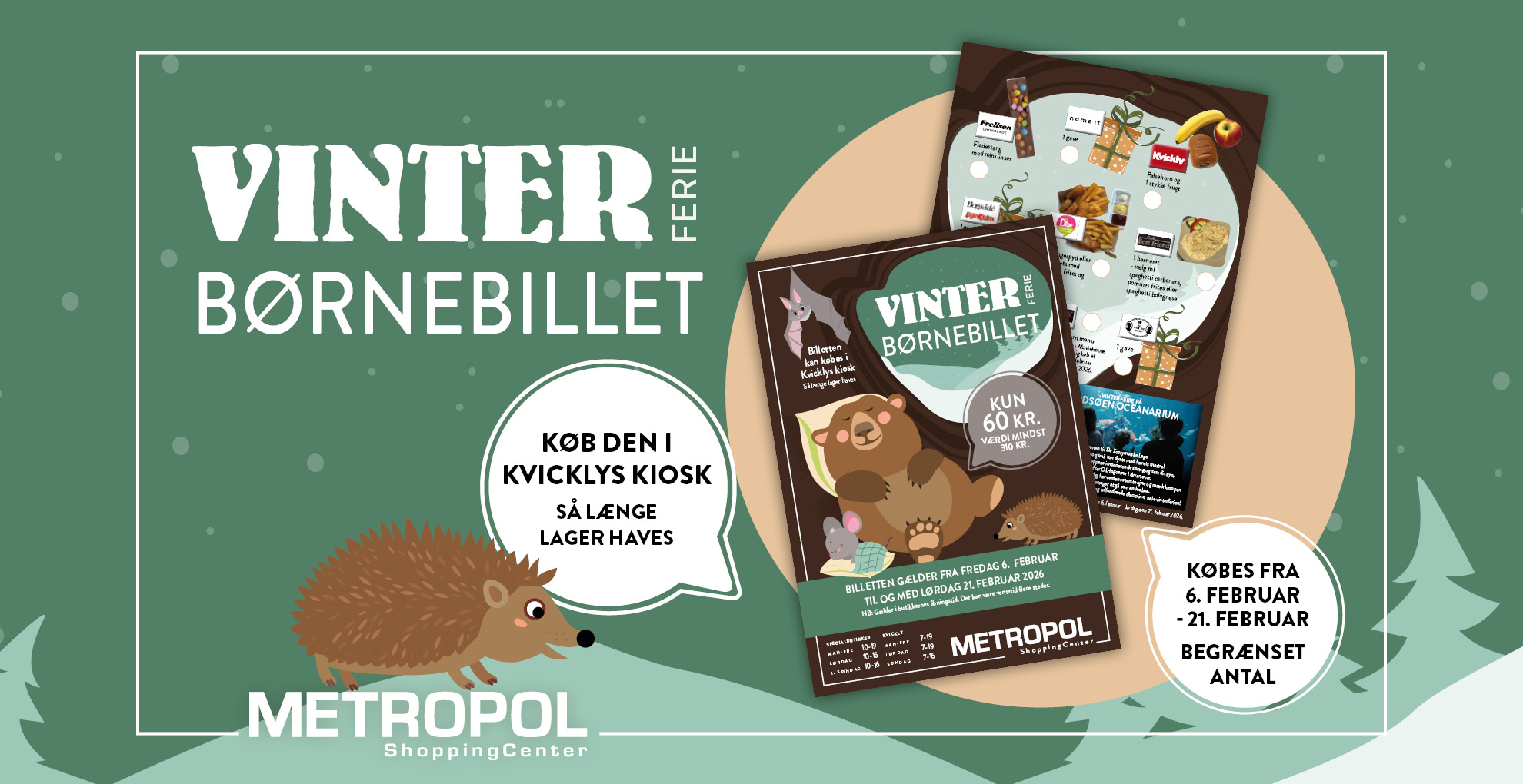 Billetten kan købes og bruges fra mandag 7. april til lørdag 19. april. Sælges i Kvicklys kiosk, så længe lager haves.