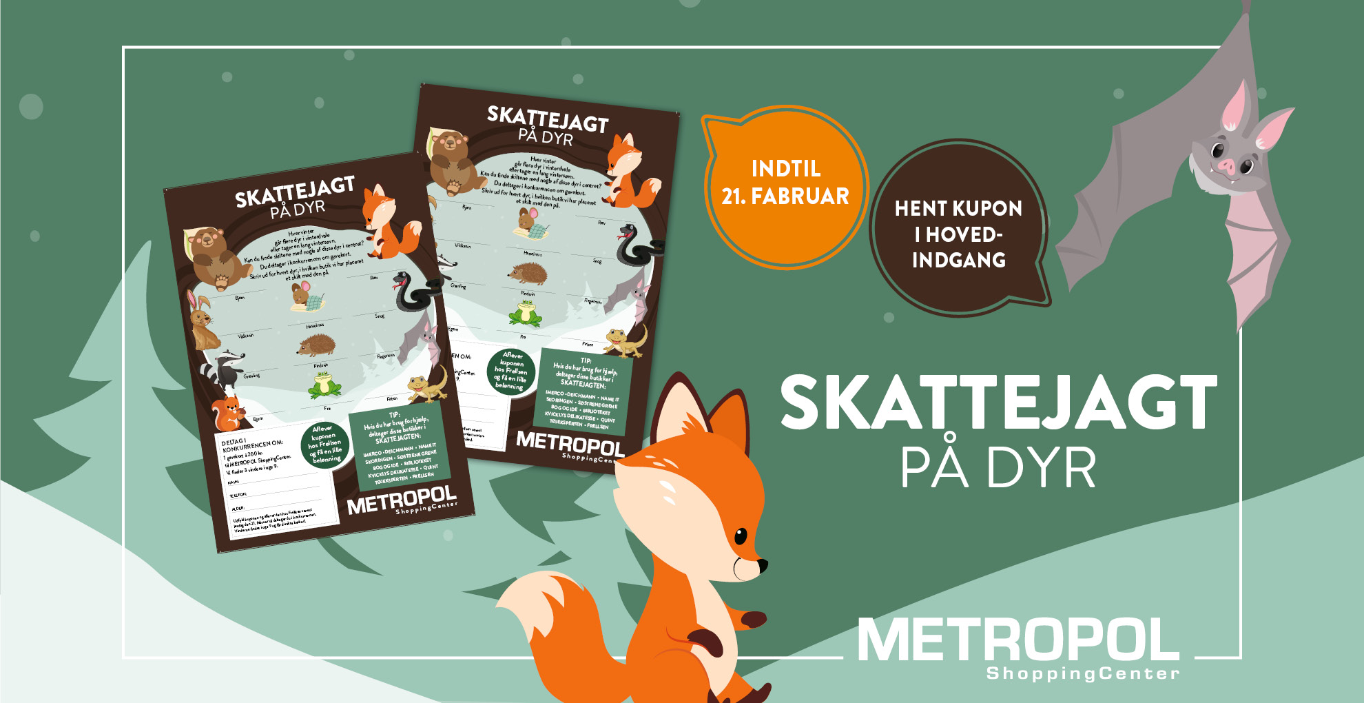 Vores maskot Metropolle har haft travlt med at pakke poser. Fra kl. 11 deler han 1 pose ud pr. barn ved centertorvet til de første 100 børn. Herefter kan du møde ham i centrets gange, hvor han uddeler kram og godter. Hvis du ikke lige kan finde ham, er det, fordi han har brug for en lille pause.