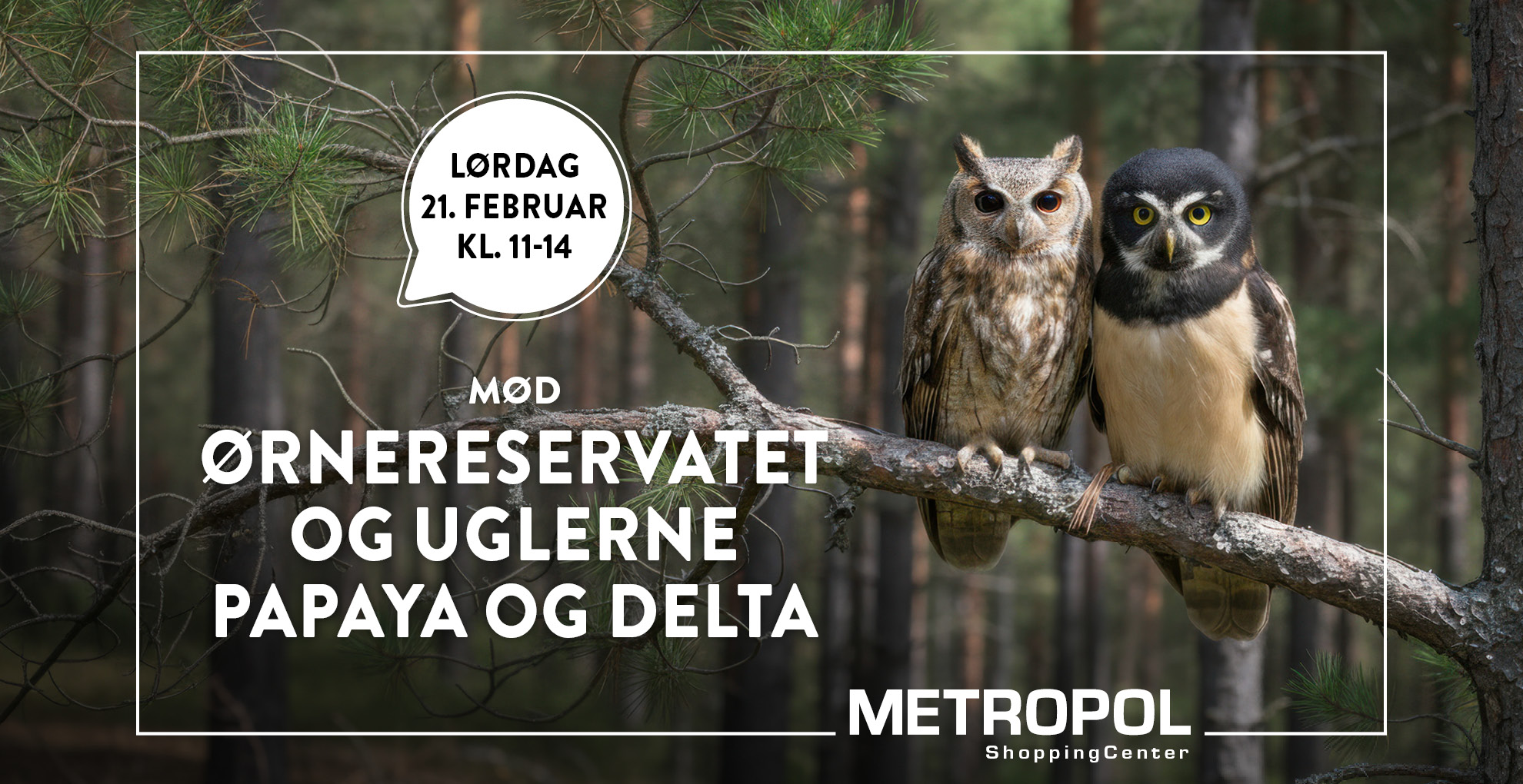 Kl. 11–14: Mød Ørnereservatet og uglerne Papaya og Delta