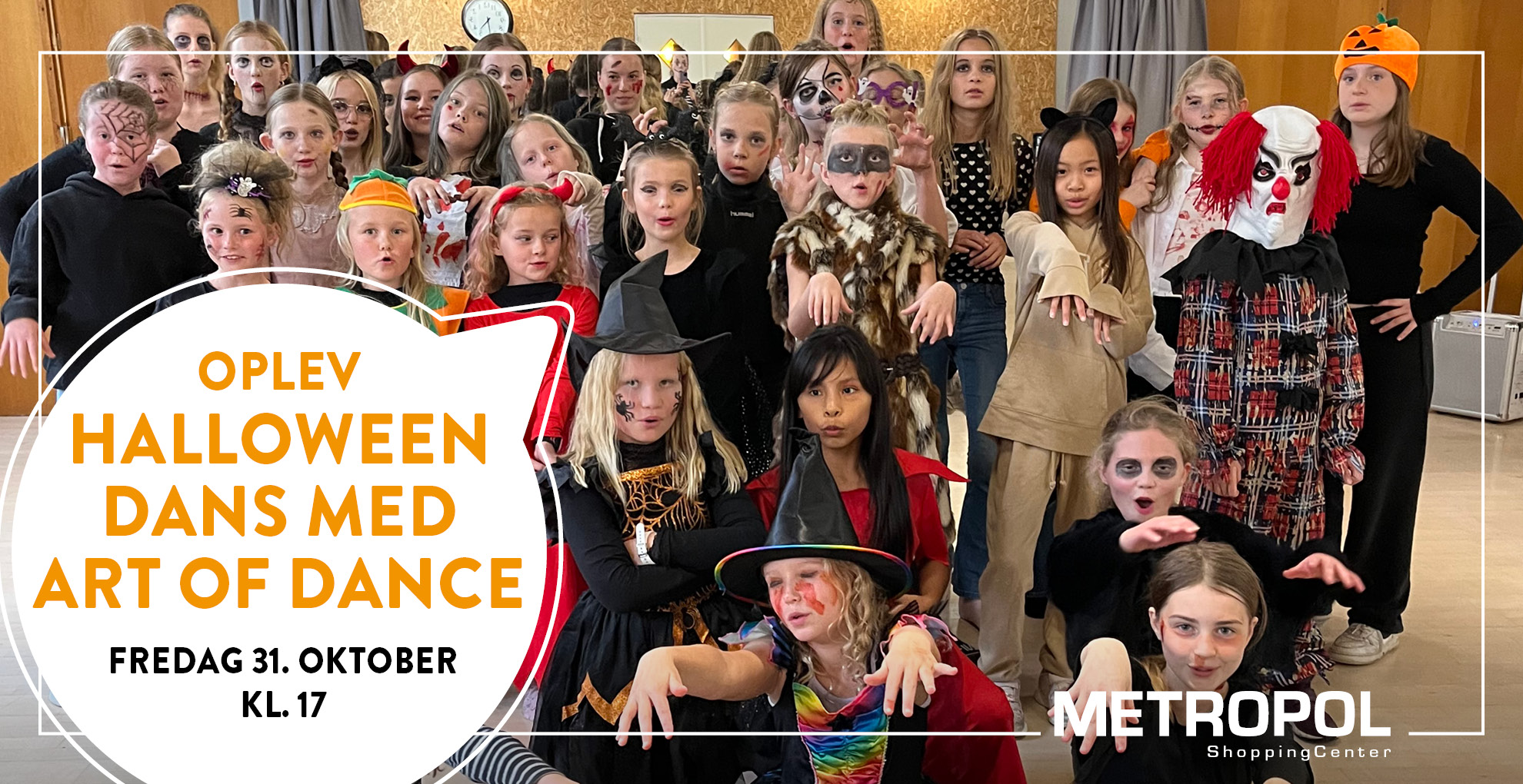 Fredag den 31. oktober kl. 17 kan man komme og opleve Art of Dance, som optræder med Halloween dans på torvet i METROPOL ShoppingCenter.